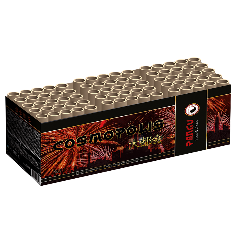 Cosmopolis, 75 shots 25mm compound. n nProductinformatie: nType product: Siervuurwerk nEffect product: Compound nTube diameter: 25mm nFanshape: Nee nClassificatie: CAT.F2 nMinimale leeftijd: 16 jaar nLegaal afsteken op: 31 december nVeiligheidsafstand: minimaal 8 meter nGeschikt voor smalle straten: Ja nGeschikt in Gemeente vuurwerkverbod: Nee Cosmopolis 75 shots 25mm Goedkoop vuurwerk kopen bij Vuurwerkwinkel Eindhoven