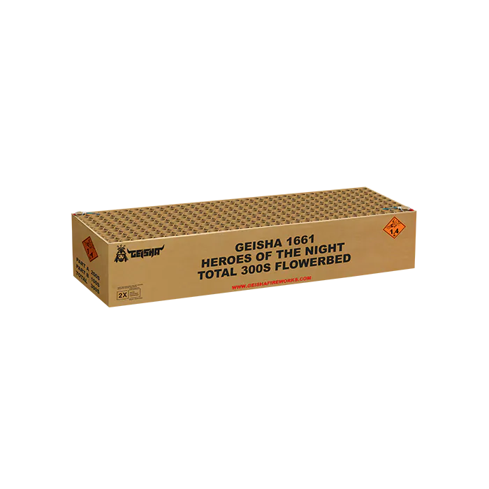 HEROES OF THE NIGHT 300’S DOUBLE COMPOUND n300 shots compoundblok gevuld met ruim een kilo kruit. Deze box zal zorgen voor een complete vuurwerkshow! n