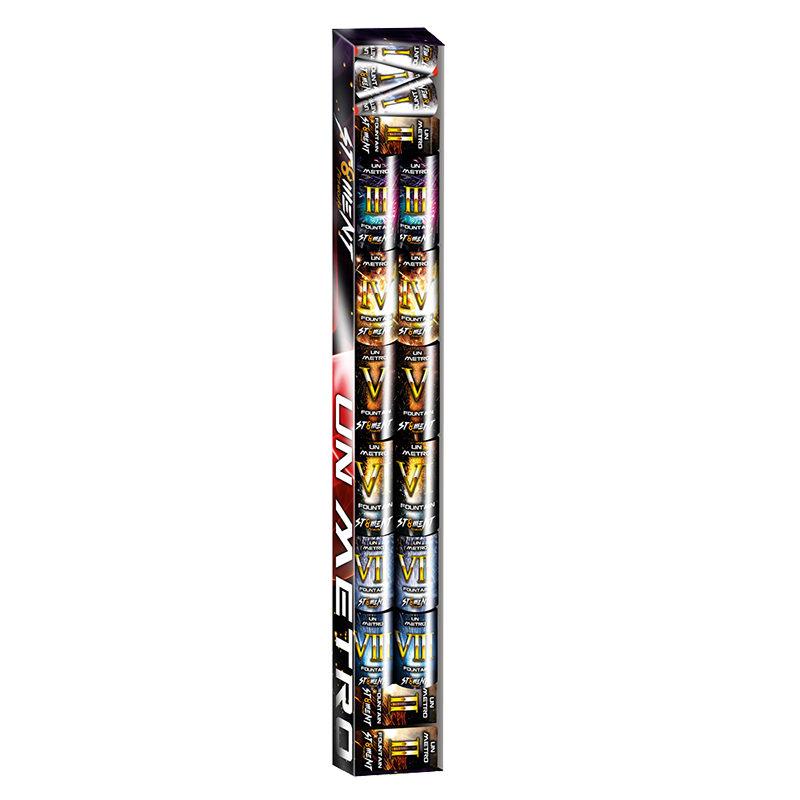Un Metro, eindelijk een meterpakket siervuurwerk in categorie 1. nBomvol met prachtige sierfonteinen. In totaal 18 stuks. 3 stuks conische fonteinen, 3 stuks vierkante fonteinen en 12 ronde fonteinen. 365 dagen per jaar legaal af te steken, ook in een gemeente met vuurwerkverbod. n nProductinformatie: nType product: Jeugdvuurwerk nEffect product: Sierfonteinenpakket nTube diameter: n.v.t. nFanshape: Nee nClassificatie: CAT.F1 nMinimale leeftijd: 12 jaar nLegaal afsteken op: 365 dagen nVeiligheidsafstand: minimaal 1 meter nGeschikt voor smalle straten: Ja nGeschikt in Gemeente vuurwerkverbod: Ja Un Metro meterassortment Goedkoop vuurwerk kopen bij Vuurwerkwinkel Eindhoven